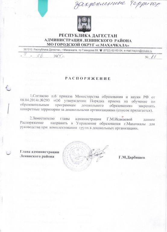 Распорядительный акт о закрепленной территории (скачать) (посмотреть)